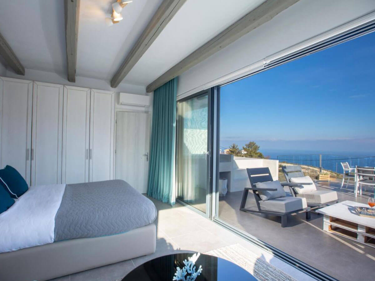 The villa features a pool and balconies boasting breathtaking views of the sea and mountains.